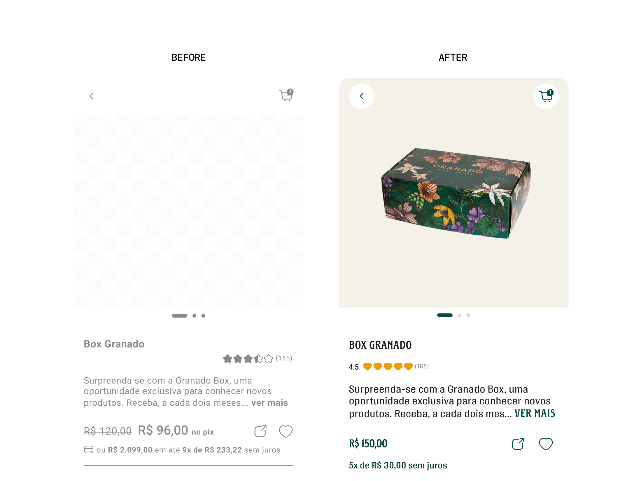 The challenge was to extend this existing foundation to support both a more refined, brand-aligned interface and a set of custom features across key moments of the journey. Rather than redefining the system, the work focused on adapting and evolving its components – balancing consistency and flexibility, while translating Granado’s premium identity into a cohesive and functional mobile experience.